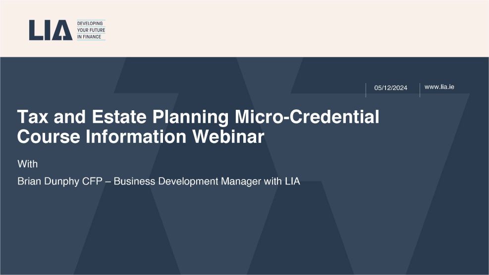 Watch our course information webinar to learn more about our Tax and Estate Planning Micro-Credential course. LIA's Brian Dunphy explores: