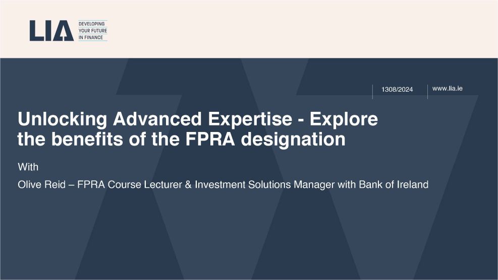 Watch below our webinar hosted by LIA's Brian Dunphy, featuring new course lecturer Olive Reid. This webinar provides an overview of the Financial Planning Risk Adviser (FPRA) course, its benefits, along with insights and advice for prospective students.